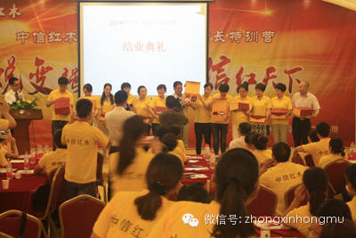 在训练营结业典礼上,中信红木董事长李忠信、董事长夫人李伟珍、中信红木营销总监张建国分别为冠亚季军团队颁发了奖品!冠军团队每人一套大红酸枝三件套礼品,亚军团队每人精品红木镇尺,季军团队每人红木家具专卖店导购实战手册一本!