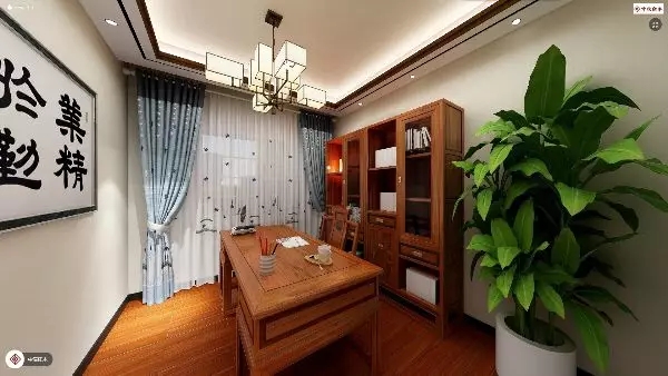 “墨,书墨也”——红木家具本身具有很好突出中国书墨文化的特质,墨水的装饰画,素雅的风景国画吊灯,书桌上文房四宝的点缀,方正大气的书柜,这应当是每个文人都会流连忘返的书房吧!