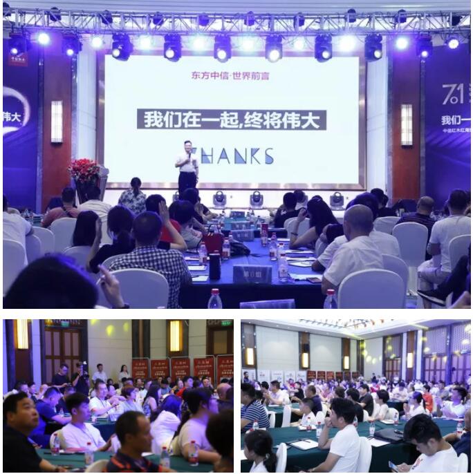 在经销商分享环节,三位中信红木的优秀经销商为大家带来了精彩的内容。中信红木长沙经销商杜鹃分享“产品是拿来与人发生关系主题”,以人为本,用心和客户交流,老客户的维护方式在于长期的细心服务。中信红木福建水头经销商李良专分享加盟中信红木的经历。通过异业,圈层营销把产品拓宽到更广的区域。中信红木山西长治李合义分享到在产品同质化,过剩的现在,产品品质十分重要。中信红木标准化生产为品质提供基础。中信红木团队工作讲究效率,为经销商解决实在问题。