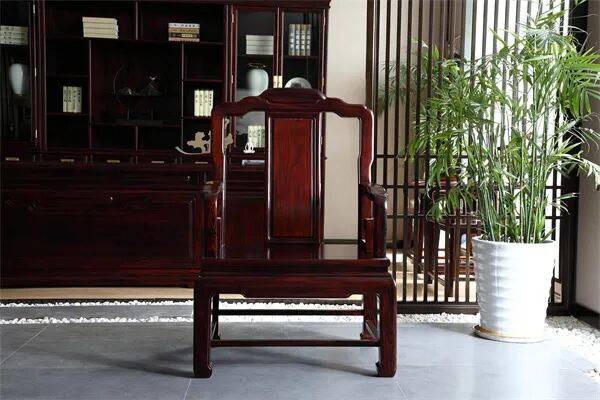 《景程书椅》沿袭传统南宫帽椅形制,整体方圆结合